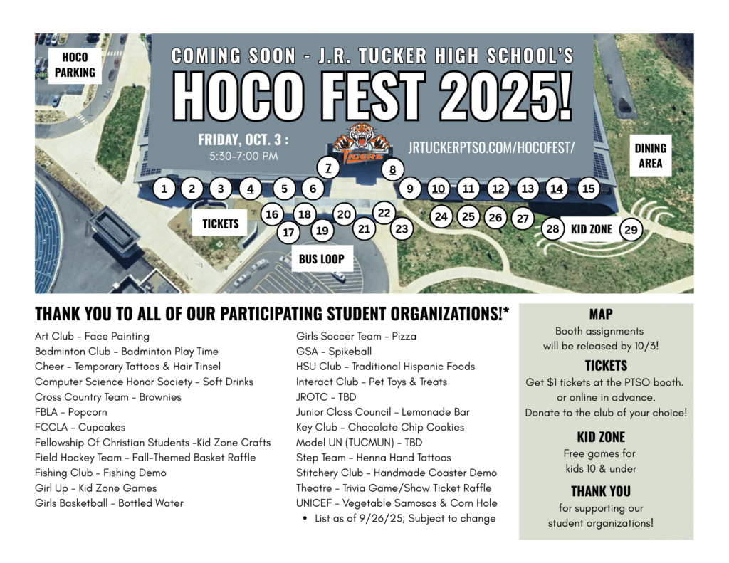 Questions? Email HOCOFEST@JRTUCKERPTSO.COM